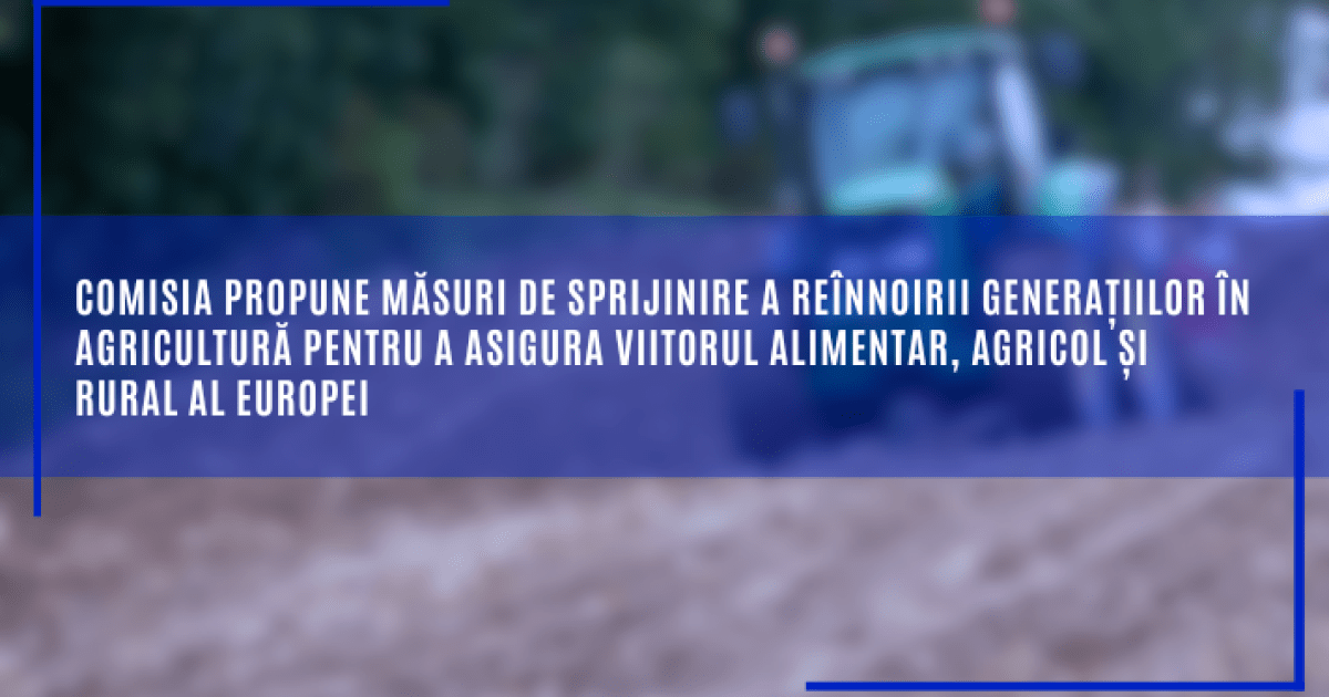 Comisia Europeană a prezentat astăzi, 21 octombrie, o „Strategie privind reînnoirea generațiilor în agricultură”, care stabilește o foaie de parcurs clară pentru sprijinirea tinerilor fermieri și atragerea unui număr mai mare de persoane către agricultură. Strategia vizează dublarea ponderii tinerilor fermieri din UE până în 2040, obiectivul fiind ca tinerii fermieri și noii fermieri să reprezinte aproximativ 24 % din fermierii europeni.